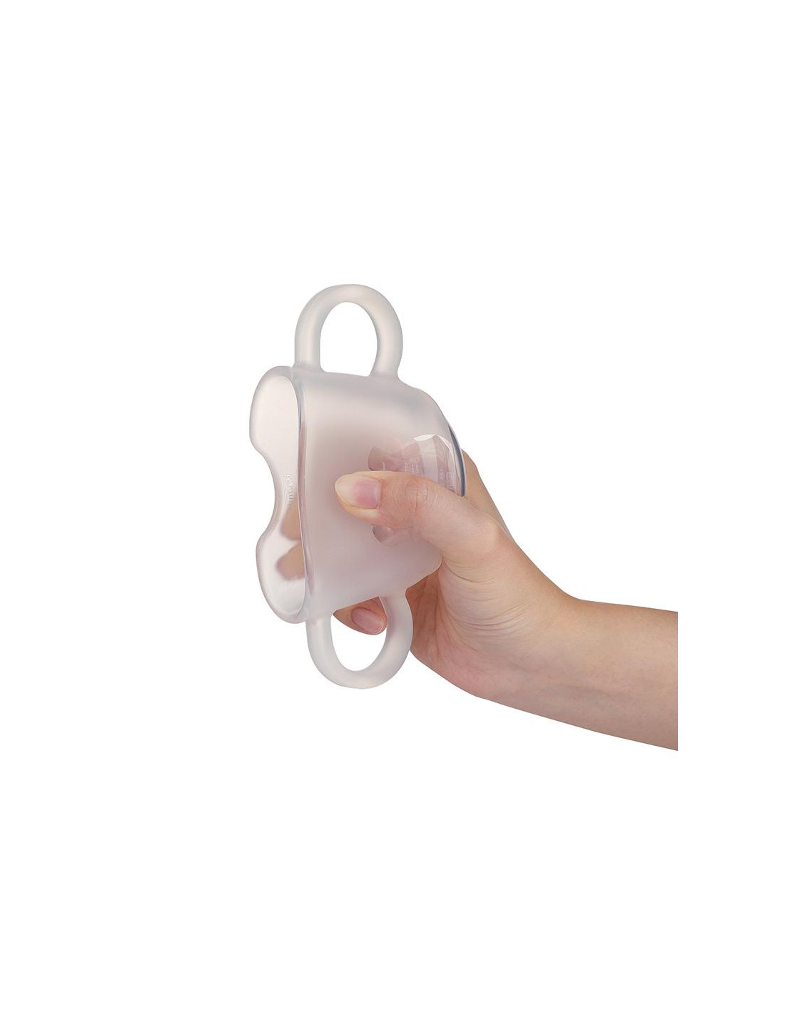 - Durch die Aussparung am Rand kann das Baby trinken, ohne den Kopf nach hinten zu neigen.